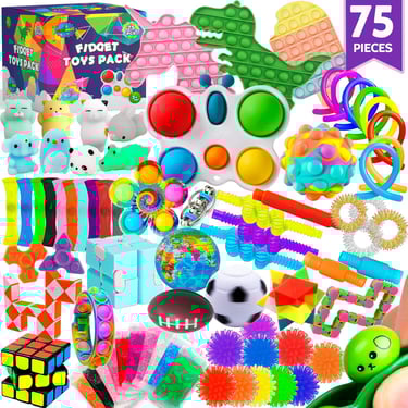 75 pcs Fidget Toys Kids Pack - Pinata Fillers, Party Bag Fillers, Classroom Prizes, Stress Relief Toys, Goodie Bag Fillers and Rewards for ADHD, Autism Bulk Fidgets Box Gifts, Toys for Boys and Girls