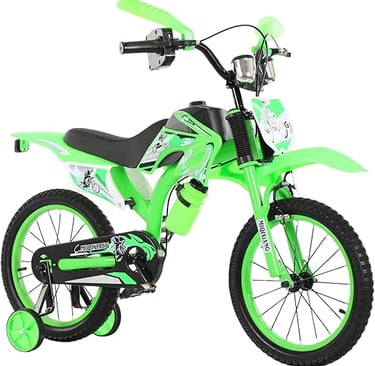 12" 16" 20" Boys Motorcross Bike with Stabilisers Black Red Green Blue Pink Moto Wheels Kids Bicycle for Ages 2-9 Years Old Motorcycle Sound Motorcross