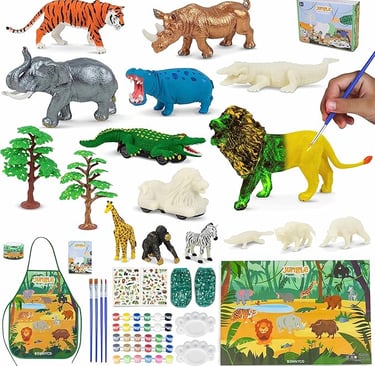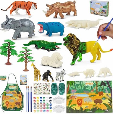 BONNYCO Animal Toys for Children Painting Kit with 16 Jungle Figures,Kit for Children with Glow in The Dark. Arts and Crafts, 3 4 5 6 7 8 9 10 Years for Birthday and Christmas