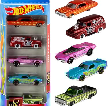 Hot Wheels Set of 5 Toy Cars (Assorted Styles, One Random Set), Extreme Race, Toy Vehicles in 1:64 Scale with Realistic Details and Decos, Collectible Cars for Kids Ages 3 and Up, 01806