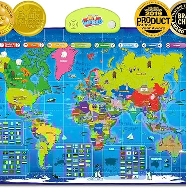 BEST LEARNING i-Poster My World Interactive Map - Educational Talking Toy for Children of Ages 5 to 12 Years Old - Perfect Geography Learning Game