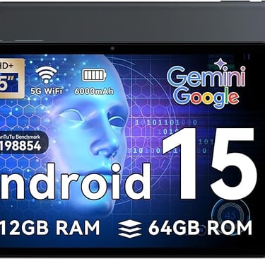 2025 Latest Android 15 Tablets, 10.5 inch with HD+IPS Display, 12(4+8) GB RAM+64GB ROM/ 2TB TF, Gemini AI 2.0, GPS, 5G WiFi, 2.0GHz CPU & 5MP Camera, 6000mAh, GMS Certified